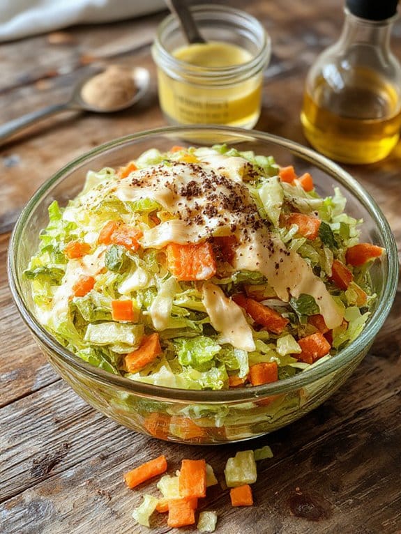 - Pour the dressing over the cabbage mixture and toss until evenly coated.