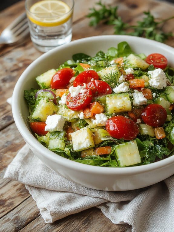I love pairing fresh vegetable salads with warm, crusty bread or a soft baguette to add a satisfying crunch. For a heartier meal, I’ll toss in some grilled chicken, hard-boiled eggs, or even a handful of chickpeas to keep things filling and balanced. It’s all about finding what works best for your taste and making the meal feel complete!