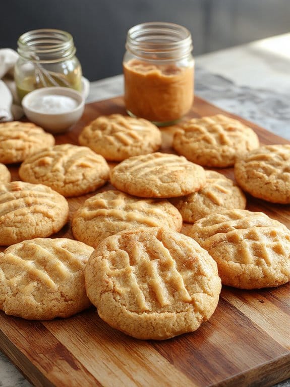 Branching out from milk pairings, let’s explore how fresh fruit can take your peanut butter cookies to the next level. I love experimenting with fruit pairings to balance the rich, nutty flavor of the cookies. Sliced bananas add a creamy sweetness, while tart apple slices create a revitalizing contrast. Berries, like strawberries or raspberries, bring a burst of juiciness that complements the cookie’s texture. For a tropical twist, try pairing them with pineapple or mango. These combinations not only enhance the taste profiles but also make the experience feel more vibrant and wholesome. It’s a simple way to elevate your snack game!